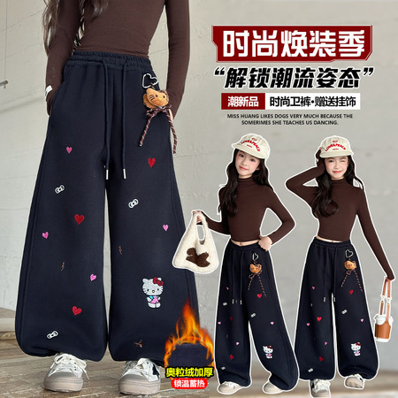 1*1下载视频“2535款刺绣KT猫一体绒卫裤”